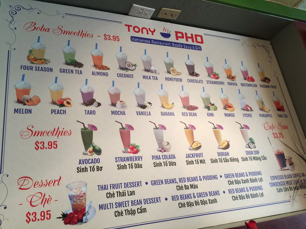 Tony Pho Vietnamese Restaurant, located in Denver, CO, offers a wide range of Vietnamese cuisine with a focus on pho. Known for its flavorful broth and generous meat portions, customers rave about the filet mignon pho and vegetarian options. The owner, Tony, creates a welcoming atmosphere, treating customers like family. The beverage menu includes traditional choices like Vietnamese lemonade ice tea and a variety of boba teas. Reviewers praise the quick service, large portions, and reasonable prices at Tony Pho. Whether you're a pho enthusiast or looking to try something new, this restaurant is a must-visit gem in Denver.